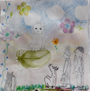 Die Kinder lernen nähen (mit der Hand), Sticken, Häkeln und freie Gestaltung.