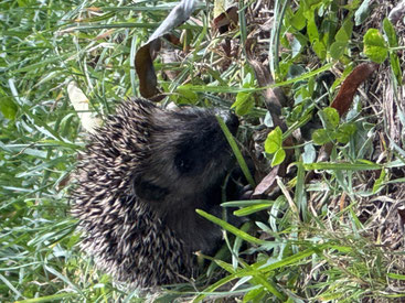 Wenn sich ein Mähroboter nähert, rollt sich der Kleine einfach zusammen. So fühlt er sich sicher.